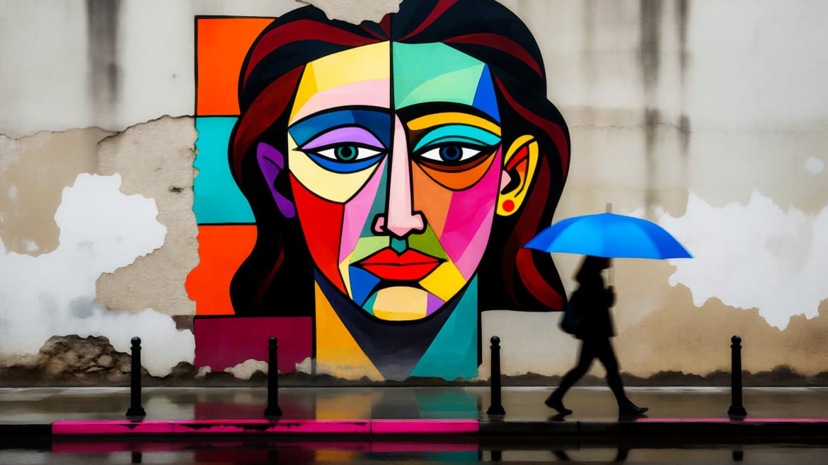 - Umbrele albastre ale nopții încadrează scena, adâncind misterul și izolând subiectul de haosul urban invizibil din spate.